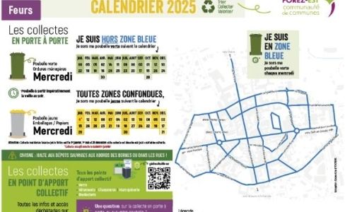 La communauté de communes Forez-Est communique : A partir du 1er janvier la collecte des déchets évolue. La poubelle jaune et la poubelle verte seront collectées le mercredi, en alternance une semaine sur deux.Pour la zone en bleu sur le plan uniquement (centre-ville), la collecte des poubelles vertes s’effectuera tous les mercredis.Tél. 04 77 27 61 81 + d'infos : https://kky.fr/T96VWZa
