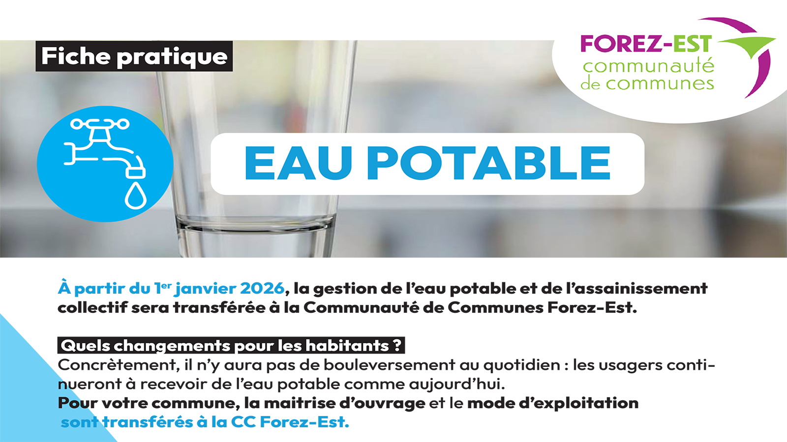 Depuis le 1er janvier, la gestion de l'eau potable et de l'assainissement collectif de Feurs est transférée à la communauté de commune Forez-Est.